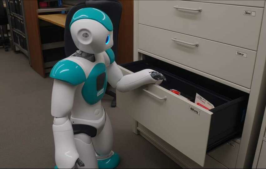 La jeune femme est assise sur un petit meuble de bureau à rideau. Elle porte un pull beige, un jean et des baskets blanches. On dirait qu’elle fait une pause cigarette, mais sans fumer puisque nous sommes dans un open space. Je l’aperçois du coin de l’œil tandis que nous nous entretenons avec le conseiller…