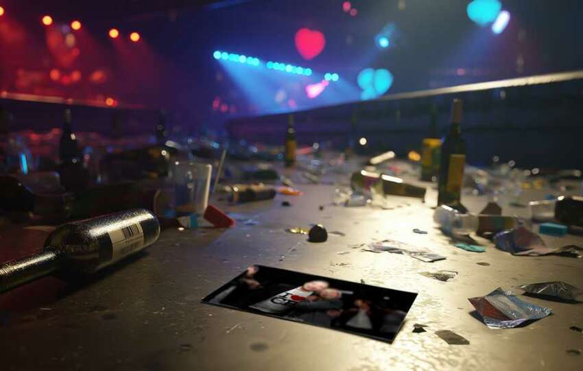 Sur la photo, on voit deux personnages : Une jolie blonde souriante et un grand brun en voie de calvitie, tout aussi joyeux. Elle porte des lunettes, lui un t-shirt blanc sur lequel on lit : « I love CB », le verbe étant remplacé par un cœur rouge alors que la typo est celle du célèbre slogan de…
